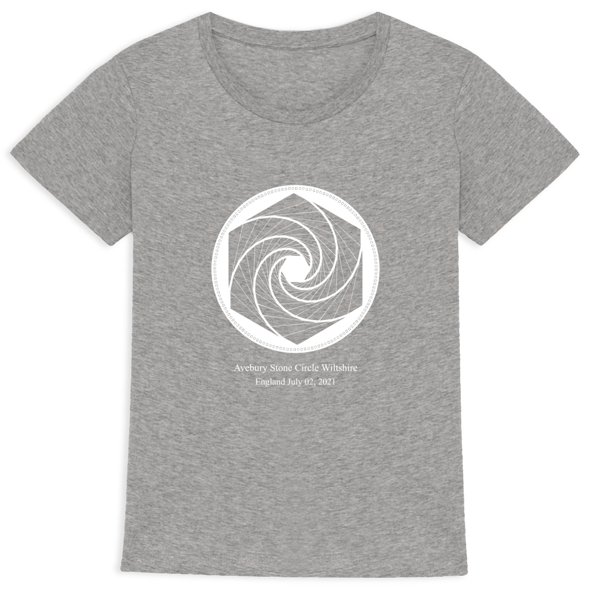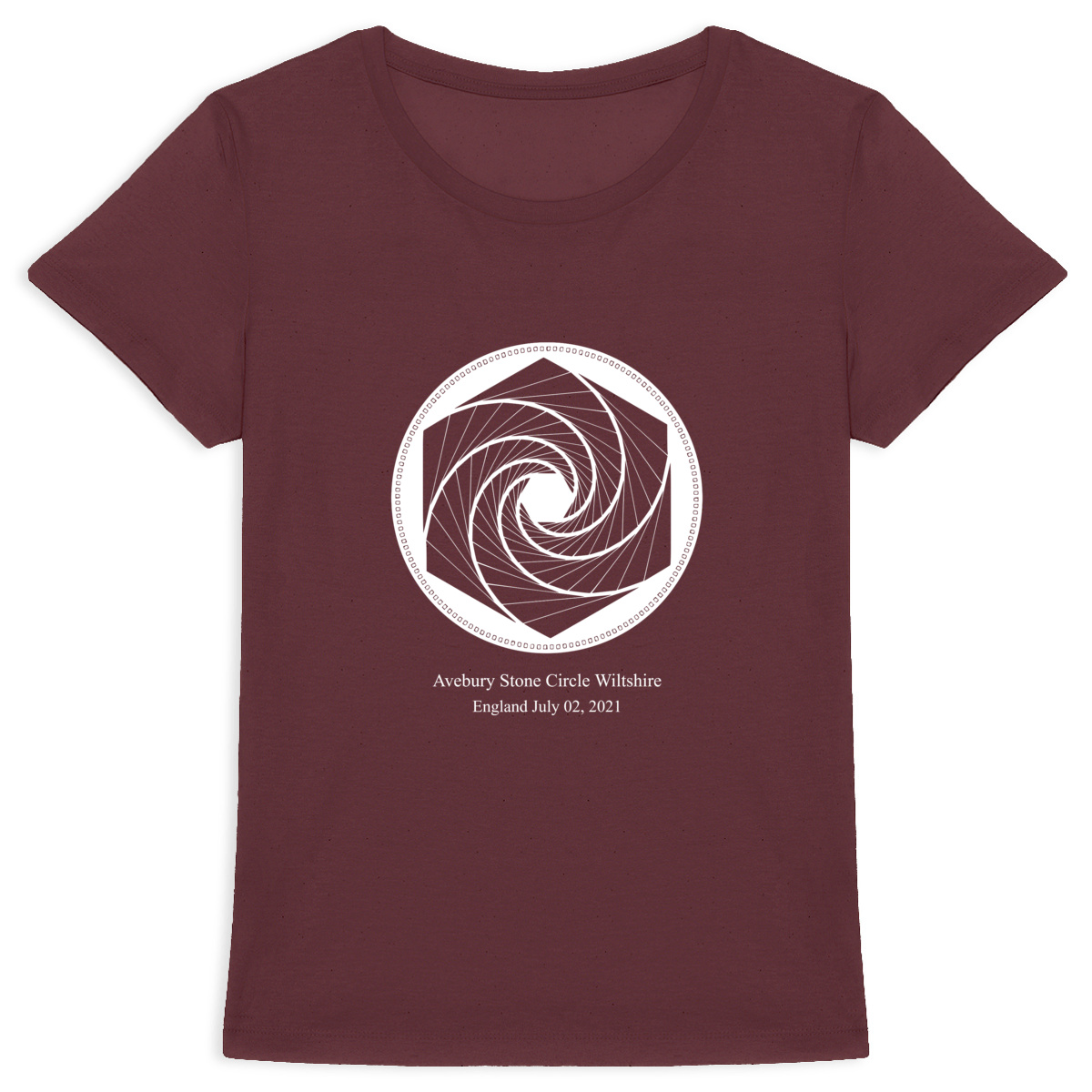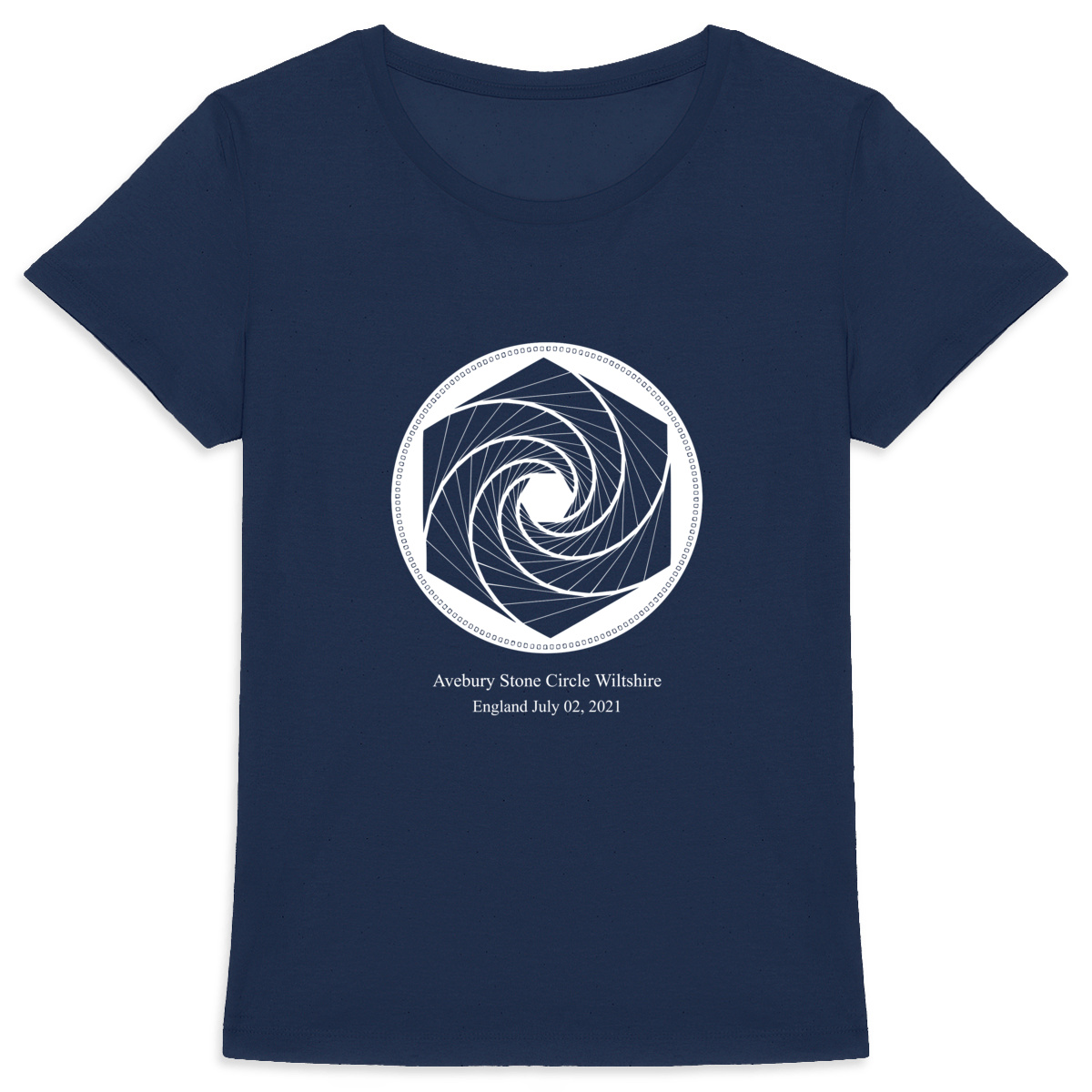 Un t-shirt en coton bio ajusté, orné du cropcircle d’Avebury imprimé en blanc sur fond foncé. Une géométrie vivante pour harmoniser votre champ énergétique et vous reconnecter à l’essentiel.