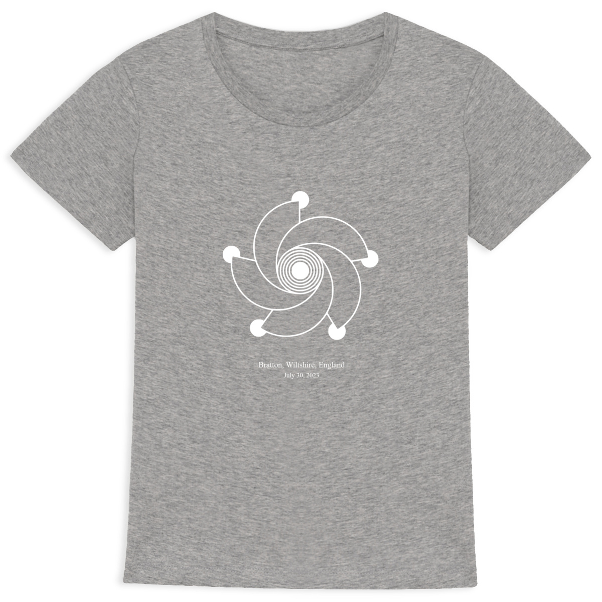Un t-shirt en coton bio ajusté, orné du cropcircle Bratton 2023 imprimé en blanc sur fond sombre. Une géométrie lumineuse pour activer la paix intérieure et le rayonnement équilibré.