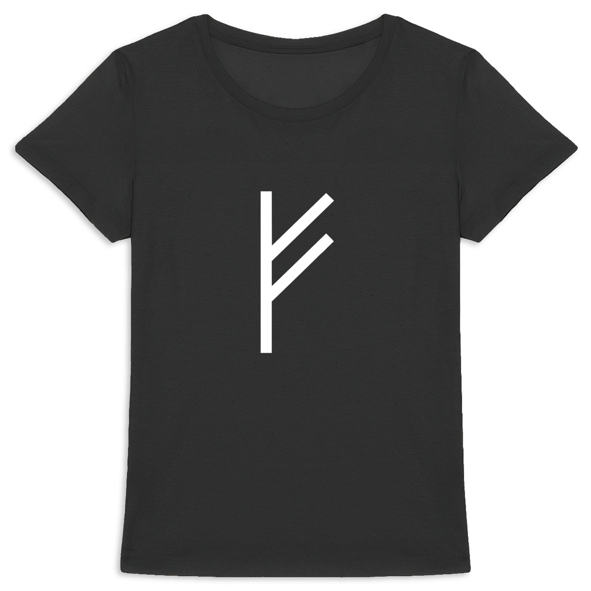 tshirt femme rune fehu noir blanc fertilité abondance création coton bio futhark freya manifestation textile ésotérique scandinave